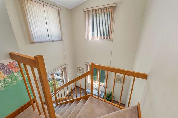 BACK ON MARKET! Amazing modern contemporary home, lovingly cared for over 30 years and solidly built by TF Moran with quality updates throughout. Beautifully landscaped and thoughtfully designed, this south-facing redwood home features striking truss construction. Updated nearly 2,000 sq. ft. IN-LAW APARTMENT WITH OWN ENTRANCE. Heated 3+ car garage, flat lot with a spacious backyard, and a two-story 24x14 shed with run-in space for two vehicles. Inside, the great room impresses with soaring 28-foot ceilings, a large foyer, and open walkways above. The main house includes three bedrooms, highlighted by a primary suite with walk-in closet, fireplace, and laundry. A unique bedroom sits above a first-floor walk-up, while a skylighted 3/4 bath serves two additional bedrooms. 1998 addition over the garage provides an office and two more rooms--one with a fireplace--plus its own entrance. In total, the home offers five fireplaces, four gas-powered, along with custom spiral staircases, built-ins, and walls of windows. The lower level, fully updated in 2025, includes a bedroom, full bath, kitchen with counter seating, living room with fireplace, sitting area, cedar closet, oversized bonus room, and utility/storage. Outdoor spaces feature custom stone walls, mature plantings, large decks, and a screened porch designed for a spa as well as extra seating area. Convenient to shopping, MCC Golf, and highways. Rare property blending space, versatility, and exceptional character.
