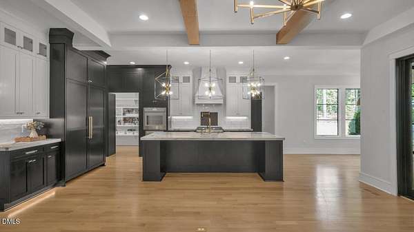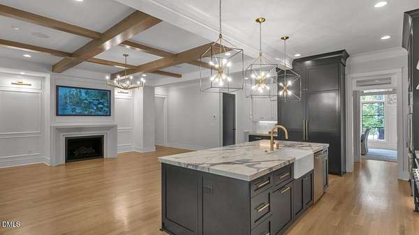 - Beamed Ceilings, Bookcases, Built-In Features, Butler's Pantry, Ceiling Fan(s), Central Vacuum Prewired, Crown Molding, Elevator, Entrance Foyer, High Ceilings, Kitchen Island, Open Floorplan, Pantry, Recessed Lighting, Smart Thermostat, Smooth Ceilings, Sound System, Walk-In Closet(s), Walk-In Shower