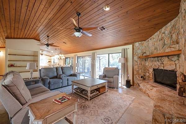 Enjoy rare, expansive waterfront living with 400 feet of direct Withlacoochee River frontage, offering boat access to the Gulf of Mexico. Take the incredible 360 interior & exterior tour to see every part of this unique property! From sunrise fishing to tranquil evening paddles, this property delivers the Florida water lifestyle at its best. A floating dock for kayaks/canoes and a boat dock with electricity and water make getting on the water effortless. The home has been beautifully renewed throughout: all new tile flooring, new kitchen and bathrooms, new appliances, new double-pane insulated windows, new wall insulation and drywall, new lighting, and fresh paint inside and out. HVAC was replaced in 2024, and the roof in 2017. The home is offered fully furnished, making move-in or vacation rental readiness effortless. One of the most impressive features is the brand-new 2,320 sq ft (58 x 40) building, offering exceptional versatility-ideal as a workshop, equipment/toy storage, hobby space, or future recreational conversion. A 2-car carport, 25 x 40 workshop, new front pergola, new walkway, and a fully fenced yard complete the property. Just 11 minutes to Goethe Forest, where you can enjoy hunting, horseback riding, and endless outdoor trails-a rare opportunity to pair a waterfront lifestyle with vast natural adventure nearby. Perfect as a year-round residence, seasonal getaway, or high-appeal VRBO. A property like this is not often available-waterfront, upgraded, move-in ready, and built for both relaxation and recreation.
