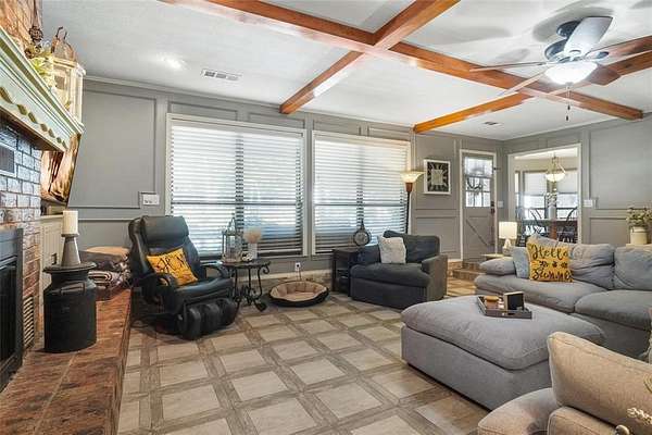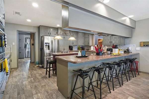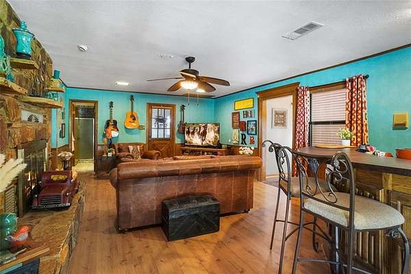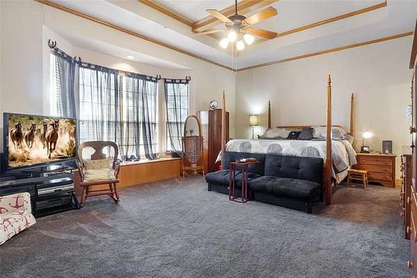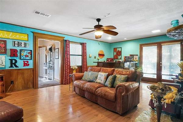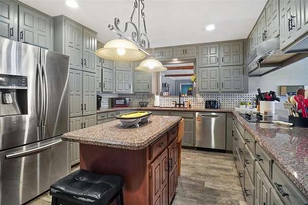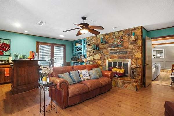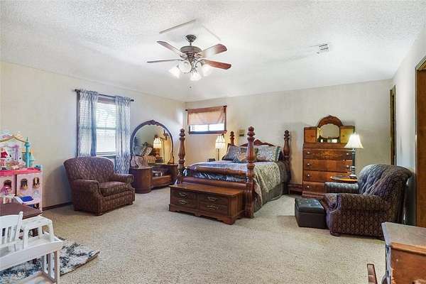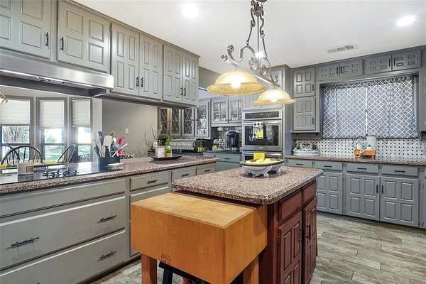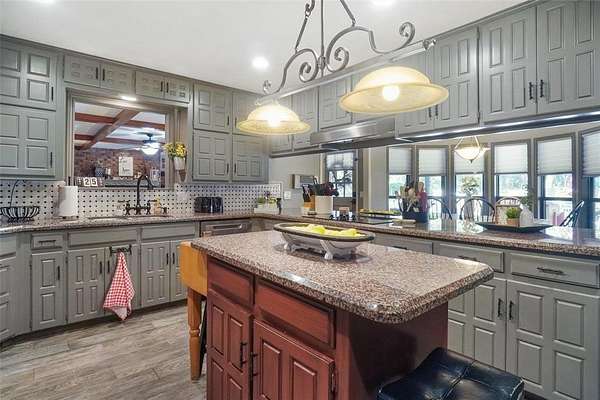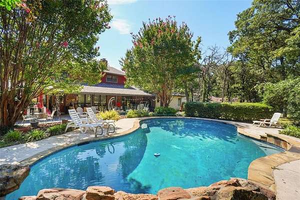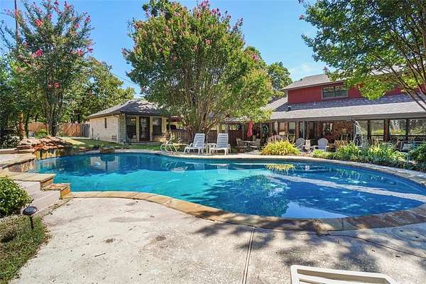 MOTIVATED SELLER! Bring All Reasonable Offers!! Encounter the timeless, tasteful design of this magnificent, multi-generational home, offering a pastoral feel in the heart of the Metroplex. The foyer leads guests and loved ones to an expansive living area with a coffered wood beam ceiling and a comforting wood-burning fireplace. Next, find more space to relax and entertain in the gameroom with its well-appointed wet bar and beautiful stone hearth. The updated kitchen boasts abundant counter space, built-in ovens & cooktop, ample bar seating, copious storage in custom cabinets, and a sunlit breakfast nook adjacent. Accessed by a dedicated hallway, the downstairs primary suite offers exceptional seclusion as well as separate backyard access. It's spacious under a tray ceiling, with a gorgeous bay window view and a lovely en suite with dual vanities & makeup counter, an oversized jetted tub, separate shower, and a huge closet space. An upstairs bedroom is well suited for use as an additional primary suite, generously sized with an en suite featuring dual vanities opposite a dividing wall, a large tub with separate shower, and two large closets. Moreover, both of the remaining upstairs bedrooms include their own baths. Out back, enjoy a private retreat with a large covered patio, artful landscaping, and a wonderful pool with stone coping and a rock waterfall feature, surrounded by textured walkway. A 1,200 sq. ft. powered shop and a free-standing apartment with full bath complete the grounds. Easy access to Hwy 377 and a wide array of shopping, dining, and entertainment options at nearby Alliance Town Center.