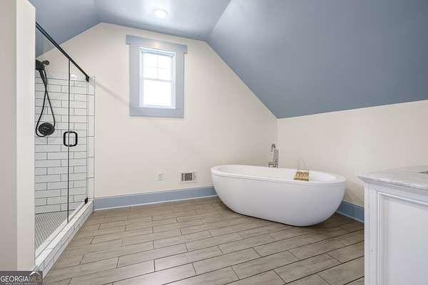 - Double Vanity, High Ceilings, Separate Shower, Soaking Tub, Tile Bath, Vaulted Ceiling(s), Walk-In Closet(s)