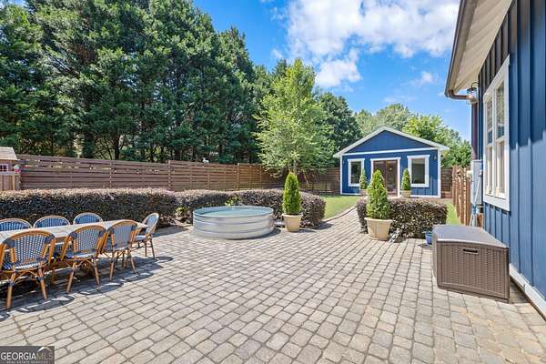 Tucked just off Camp Creek Road near Cornelia, this thoughtfully designed home offers the perfect blend of comfort, character, and convenience. Inside, you'll find three spacious bedrooms and three full bathrooms, anchored by a dream kitchen-complete with custom cabinetry, open shelving, a walk-in pantry, oversized island, and a natural gas range. The open layout connects the kitchen, dining, and living spaces, all flowing effortlessly into a private courtyard that invites year-round entertaining. Imagine movie nights under the stars, soaking in the outdoor tub-pool, or hosting guests in this one-of-a-kind backyard retreat. The primary suite is a true sanctuary, featuring a spa-inspired bath with a luxurious soaking tub and a walk-in closet that rivals the size of a bedroom. Just off the courtyard sits a detached space ideal for a home office, creative studio, or workshop. At the top of the property, a poured foundation is ready for your next vision-whether it's a second workshop, guest house, or additional storage. Mature landscaping, copper gutters, and freshly painted Hardie siding complete the picture of a low-maintenance, high-style home made for living well.