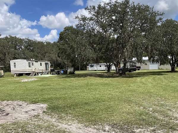 Looking for country living? Here it is! This 5 beautiful acres in Osteen is a short drive to Orlando or the beaches. On the property you will find 2 ( 1 bed 1 bath) park model mobile homes. In addition there are 2 large garages. A mechanist or hobbyists dream space! One is 30X 60 with a bathroom, an loft area, and 9,000 LBS car lift. The other is 25X 40, nice size to hold lawn mowers or tractors. There are a few other structures that can be used for feed storage or tack rooms. The property is fenced so bring the farm animals!