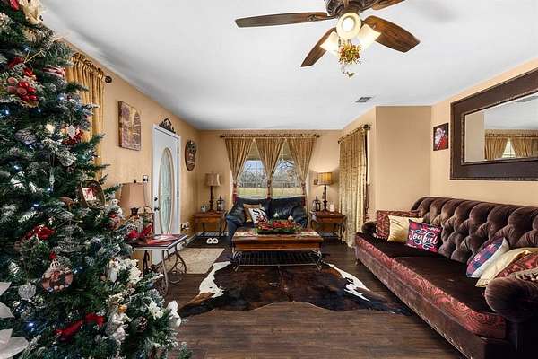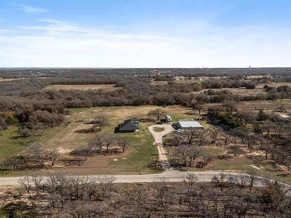 Country Retreat with Endless Opportunities! Nestled on 5 serene acres just outside city limits and 28 miles from downtown Fort Worth, this 3 bedroom, 2 bathroom home features a charming wraparound porch, updated kitchen and bathrooms with granite countertops, and modern comforts throughout. This property is perfect for home based business, VRBO, bed and breakfast, wedding events, trade day events or any business venture. Property has a 48x60 fully insulated shop featuring central heat and air, a scenic pond, private well, six septic tanks, two RV hookups with 50amp service, one with sewer hookup. Currently operating as an established winery with gold medal winning wine, which is also available for purchase. Ask agent for details. There is plenty of acreage for a vineyard! Ask agent for link to videos of past events at the property. You don't want to miss this unique opportunity!