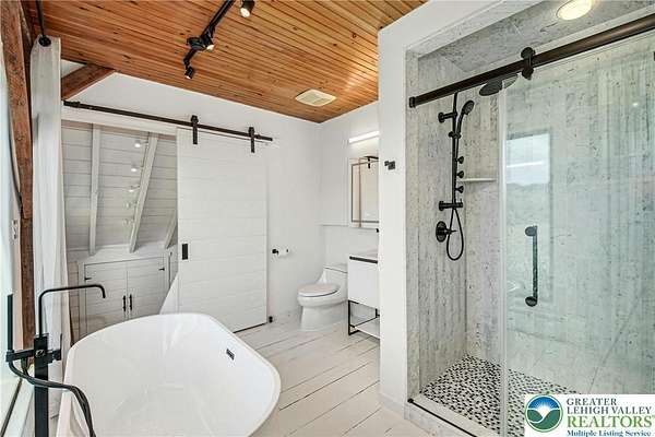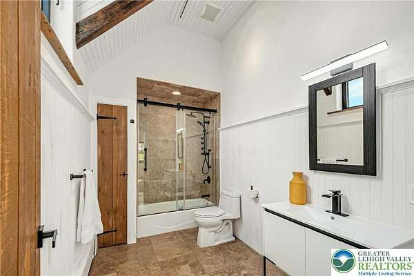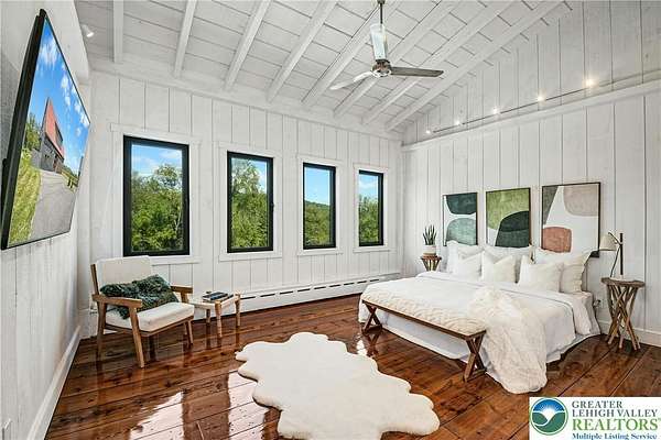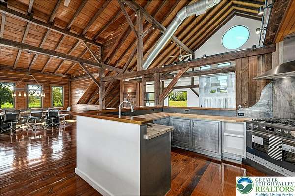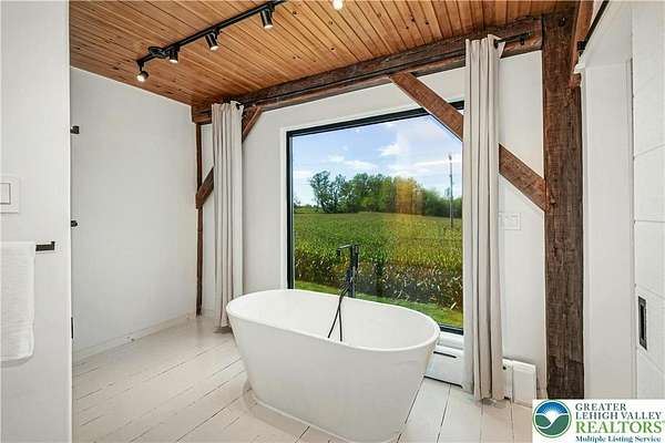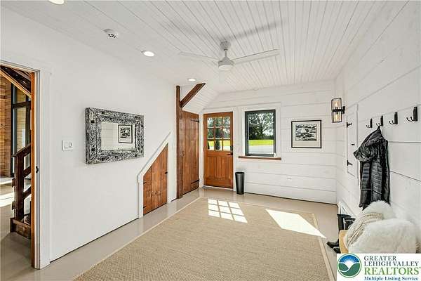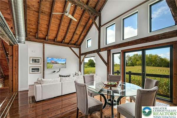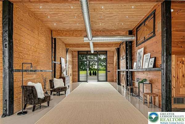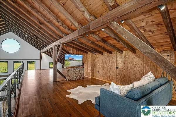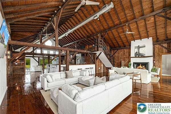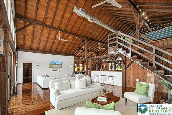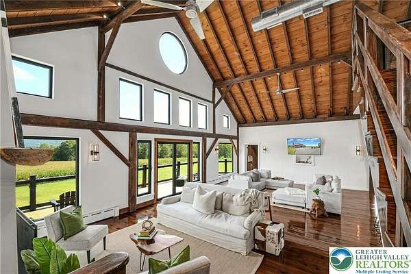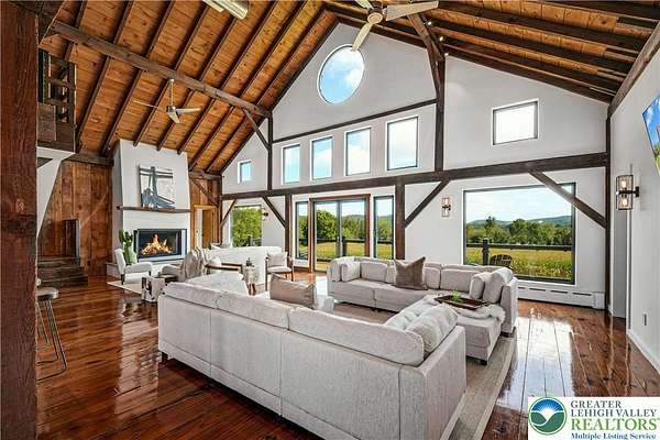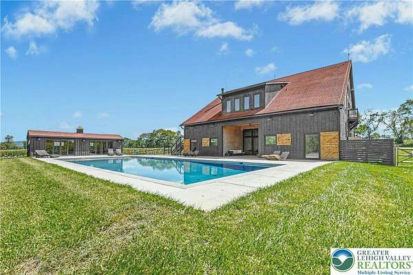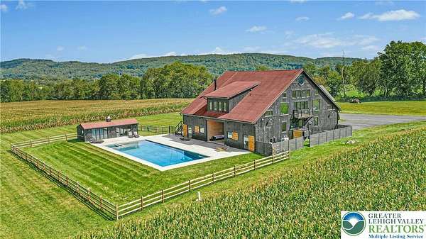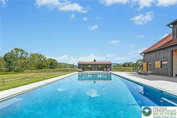 The very essence of a Bucks County gentleman's estate is evidenced at first approach...turning off a quintessential country road, meandering down a long, tree-lined drive, all surrounded by breathtaking views of the Durham countryside that include long distance vistas over the Delaware River Valley. Sequestered on 90 acres, the setting is a unique and timeless representation of the magic for which Upper Bucks County is famous. Spring Hill is a rare and beautiful example of a barn renovation with re-imagined vaulted spaces, blended with stunning new architectural details, re-purposed barn beams, and antique wood. The seamless blend of original features and new renovations amazes and delights. The buildings and pool have been perfectly positioned, amidst the rolling acreage, overlooking views of manicured farmland, gardens, and specimen plantings. Six bedrooms and nine baths invite family and guests, and a separate guest apartment will pamper all while providing a comfortable space apart. Additionally, 9 car garaging invites car enthusiasts and collectors alike. The heated pool, spa, and adjacent pool house are dramatically positioned amidst the serene views. For the horse enthusiast, the property is a blank canvas for future equestrian pursuits. Spring Hill is one of the jewels of Bucks County, in an exquisite and secluded setting.