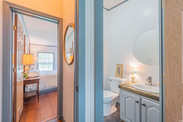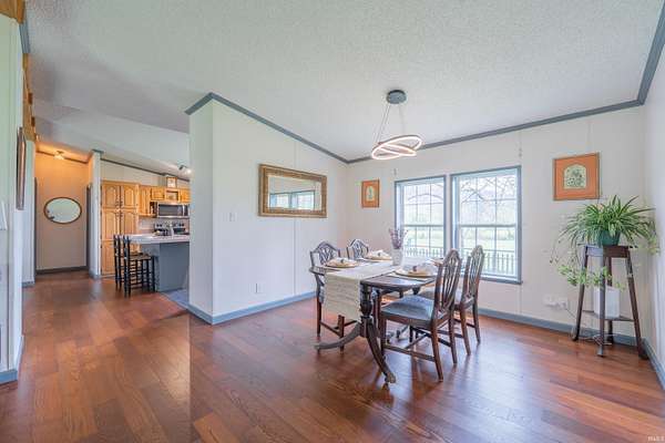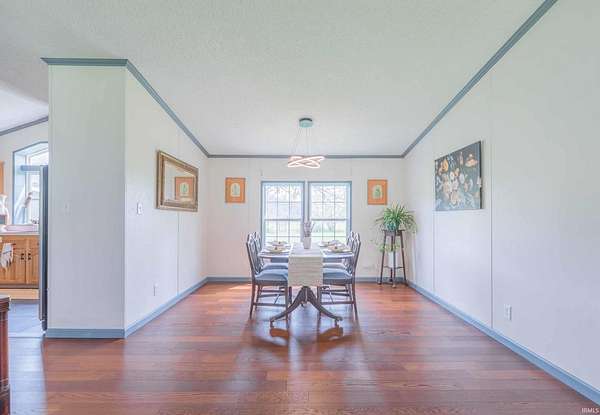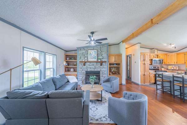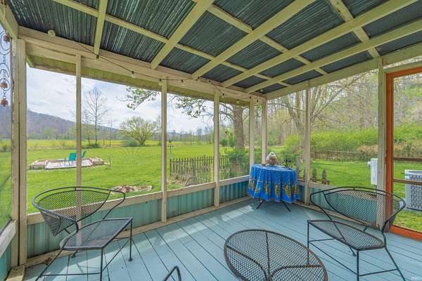 Join us for an OPEN HOUSE on Saturday, April 18, 2026 from 12:00PM to 1:30PM! Designed to capture the surrounding landscape, this charming split floor plan 3 bedroom, 2.5 bath home sits on 2.59 acres and offers peaceful views from multiple living spaces. Vaulted ceilings enhance the main living area, where a wood-burning fireplace with a natural stone hearth creates a warm focal point. An updated kitchen overlooks the backyard and features a tiled island, newer appliances, and a large farmhouse sink. Recent interior upgrades include engineered hardwood flooring throughout the main living areas and bedrooms, along with refreshed bathrooms featuring modern fixtures, new flooring, and smart mirrors. Major improvements add value and peace of mind which include a newer HVAC system (2023) and a metal roof in 2018. The exterior of the home also got a recent redesign with new shutters, light fixtures and freshly edged landscaping. Outdoor enthusiasts will enjoy the partially fenced picturesque garden area off the screened back porch. In addition, property adjoins 148 acres of protected federal land. Tranquility awaits all within easy access to Indiana University, College Mall, and nearby east side Bloomington amenities.
