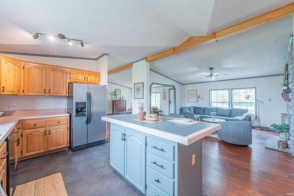 - Built-In Bookcase, Ceilings-Vaulted, Dishwasher, Jet/Garden Tub, Kitchen Island, Main Floor Laundry, Main Level Bedroom Suite, Porch Screened, Refrigerator