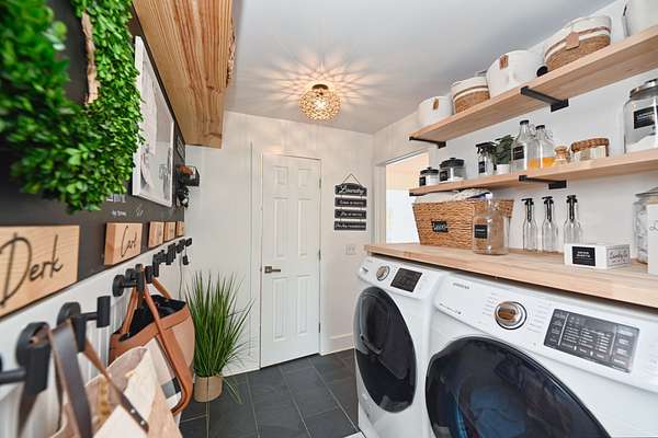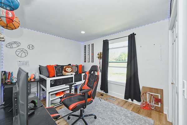 In addition to the four bedrooms, there is a flex room with a closet, ideal for a home office, playroom, guest space, hobby room, or potential fifth bedroom depending on your needs.