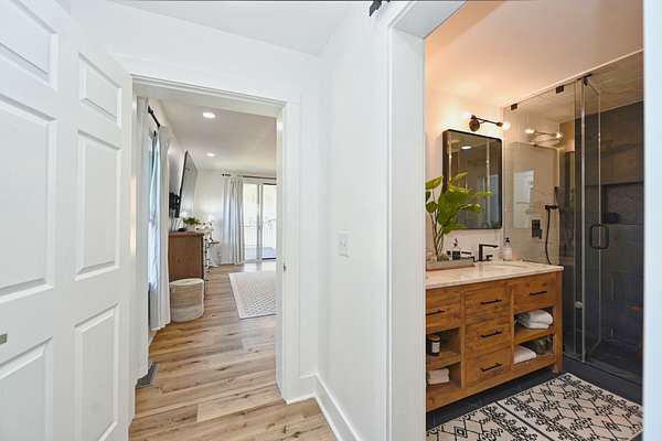 The expanded primary suite offers generous space and a spa-style bath complete with a built-in steam shower.