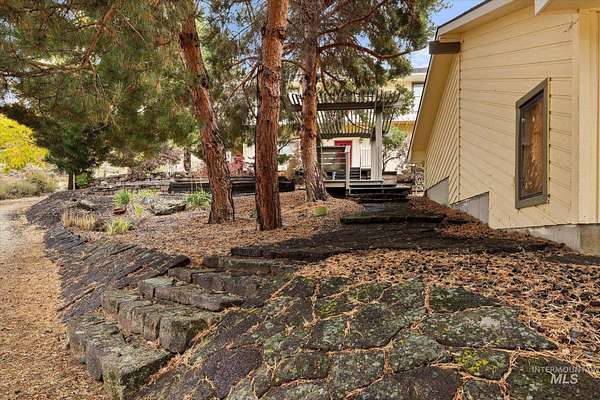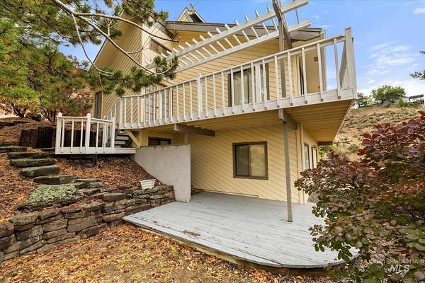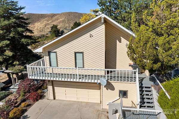 Perched in the Boise foothills just 12 minutes north of downtown Eagle, this private 1.55-acre property offers space, views, and freedom rarely found this close to town. With no HOA and neighbors set well apart, this is a true Idaho retreat where privacy and open skies take center stage. The 3-level home features 2,532 square feet with 3 bedrooms and 2.5 baths, thoughtfully designed to take advantage of its hillside setting. The walk-out lower level allows the home to live bright and open, with ground contact on only one side-never feeling like a traditional basement. Expansive living areas and a wrap-around deck capture sweeping south-facing views across the Treasure Valley, creating a stunning backdrop for daily living and entertaining. A unique loft area provides a quiet, private retreat-ideal for reading, meditation, or simply unwinding while taking in the surrounding foothills atmosphere. This flexible space adds a sense of character and calm rarely found in homes of this era. The oversized two-stall attached garage includes a shop area, while the detached 535-square-foot garage/shop provides excellent additional space for hobbies, storage, or projects. If you're seeking acreage, views, and freedom from HOA restrictions-without sacrificing proximity to Eagle and the Boise metro-this property delivers a rare and compelling opportunity.