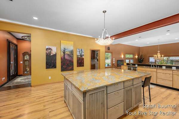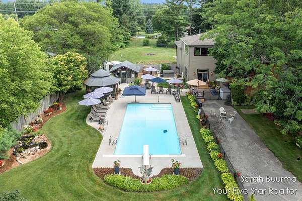Welcome to your private retreat! This exceptional 4 possible 5 bedroom, 3.5-bath multi-level home offers 4,525 sq ft of beautifully finished living space, copious storage space and 6 garage stalls, all on 2.6 meticulously landscaped acres. From the serene setting to the resort-style amenities-including a sparkling inground pool & full outdoor kitchen-this property blends comfort, luxury, and privacy in perfect harmony. Move-in ready and full of character, this one-of-a-kind home is just 1 mile from the charming Village of Caledonia, minutes from top-rated schools, M-6 highway, the airport, shopping, dining & entertainment. Whether you're relaxing poolside, entertaining guests, or enjoying peaceful evenings in your own backyard oasis, this home has it all. Don't miss the attached features list for full details! cont . . Purchase this home with extra peace of mind - a paid 1 yr home warranty through AHS is included! Schedule your private tour today and experience everything this stunning property has to offer! Note: google maps directions are incorrect