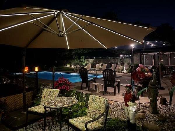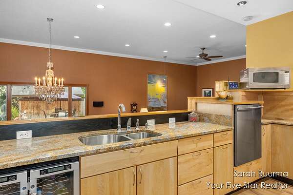 - Ceiling Fan(s), Center Island, Garage Door Opener, Hot Tub Spa, Pantry, Sauna
