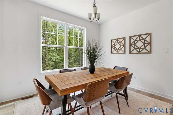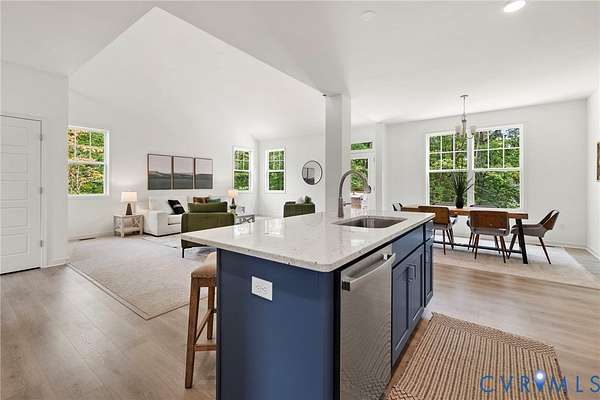 MOVE-IN READY! Enjoy new construction without the wait! The Sutherland is a two-story home featuring five bedrooms, three full baths, and a side-load garage. Featuring durable laminate plank flooring throughout the main living area, the first floor offers open-concept living. Directly off the foyer, you'll find a guest bedroom (currently staged as an office) with direct access to a full hall bath. The chef's kitchen features granite countertops, a glass tile backsplash, a center island, a double door pantry, a large center island with barstool area, and stainless steel appliances, including a wall oven/microwave, and a cooktop with range hood. An adjoining dining room is open to the two-story family room that is filled with natural light and features a glass door leading out onto the rear deck. The FIRST-FLOOR PRIMARY suite is tucked at the back of the home and features spacious dual walk-in closets, a tray ceiling, and a luxurious ensuite bath that features a double vanity, tile floor, and a walk-in open shower with a transom window. A mudroom and a spacious laundry room complete the first floor. The second floor features three additional bedrooms and a centrally located loft area. Bedroom 2 features a large walk-in closet and direct access to the full bath, while bedroom 3 offers an adjoining sitting room and a walk-in closet. Bedroom 4 with double-door closet. A full hall bath, with a tub/shower combo and a double vanity, completes the second floor. Lake Margaret at The Highlands is a charming, age-restricted neighborhood tucked in the lovely golf course community at The Highlands in Chesterfield, VA. In addition to the stunning grounds and facilities at the championship 18-hole golf course, Lake Margaret at The Highlands offers three lakefront pools with a clubhouse, tennis courts, trails, a playground, and two lakes totaling over 100 acres for fishing, paddling, and canoeing. Plus, the convenient location between Richmond and Petersburg offers dining, shopping, and entertainment just around the corner.