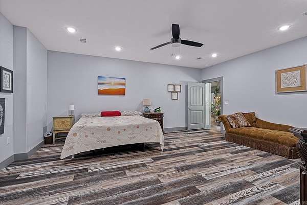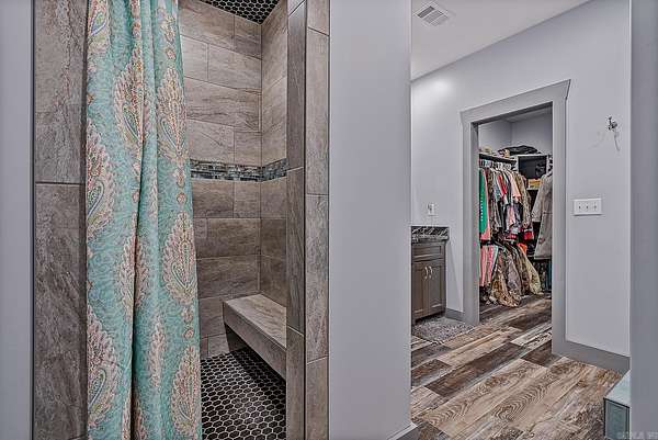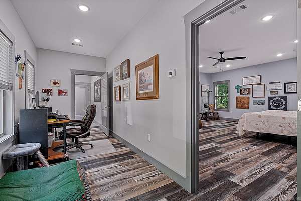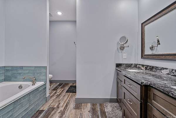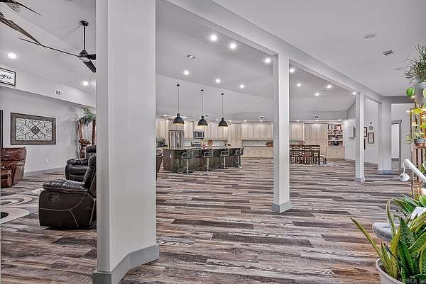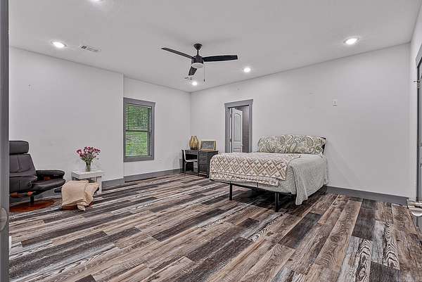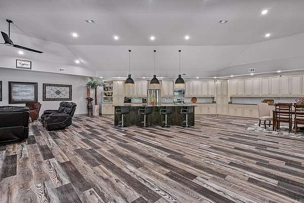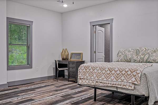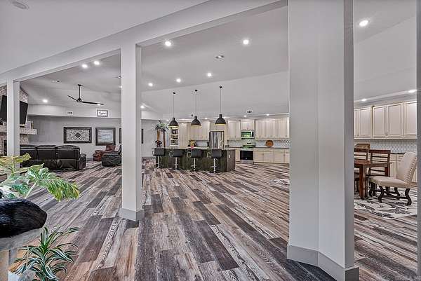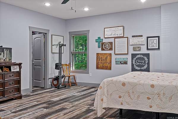 Live Off the Grid Without Giving Up Granite Countertops. Introducing a once-in-a-lifetime property for those who want peace, privacy, and preparedness without sacrificing modern comfort. Nestled in the rolling hills of Harrisburg, 8203 Oak Creek is the perfect fusion of luxury living and self-reliant survival. This homestead-style retreat is built for everything from weekend retreats to world-altering events. Whether you're bracing for zombies, grid failure, or just in-laws staying too long, this home is move-in ready and apocalypse-friendly. Custom-built, and completed in 2023, nestled on 9 acres along Crowley's Ridge.Thoughtfully designed with a contemporary aesthetic, this home showcases open spaces, soaring ceilings, and an abundance of natural light perfectly complemented by serene, wooded surroundings and abundant wildlife.Step inside to find 13-foot ceilings, waterproof luxury vinyl plank flooring, and beautiful granite countertops.The kitchen is as functional as it is stylish, featuring built-in accents, elegant drop-down lighting, and an abundance of cabinetry to meet all your storage and entertaining needs.A west-facing front door fills the home with warm afternoon light.
