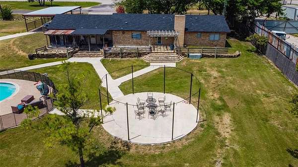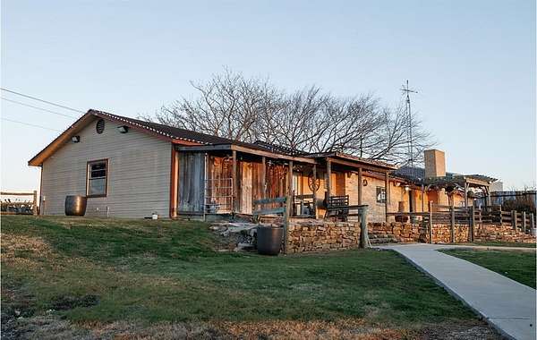 Welcome to this one-of-a-kind 10-acre estate that offers the perfect blend of comfort, entertainment, and income potential. The main residence is full of character and surrounded by wide-open space, mature trees, and beautiful Texas skies. Ideal for multigenerational living or rental income, the property features a detached guest home with its own entrance and amenities.