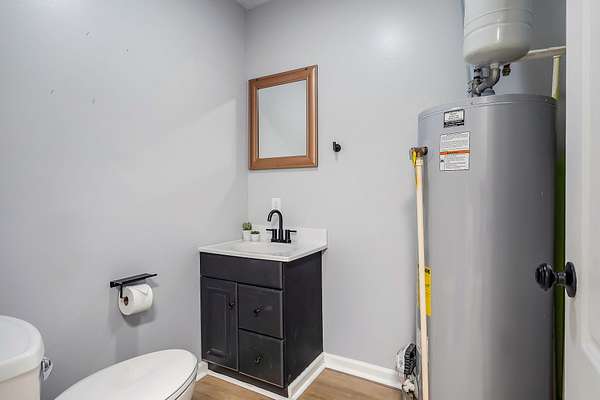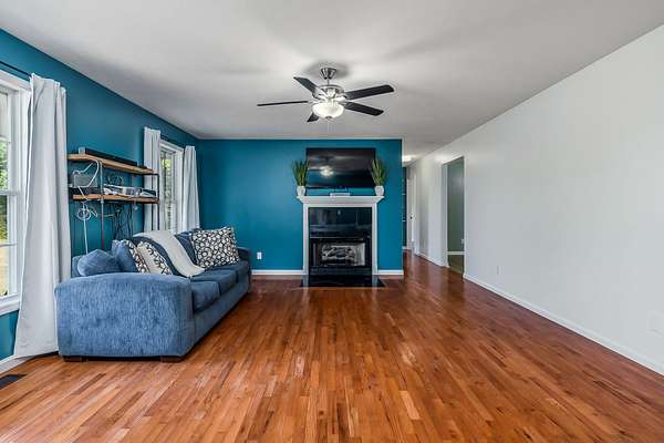 Inside, you'll find a comfortable floor plan with an open concept kitchen, natural gas central heat, newer gas water heater, gas range and spacious living room with gas log fireplace, hardwood, LVP and tile flooring. The additional 2 guest bedrooms are perfect for guest or perhaps utilize one as a home office. The primary ensuite offers a sanctuary with its own dedicated bathroom for privacy and convenience, This home provides all the amenities for gracious living in the South. Step outside and enjoy the wide-open space, mature trees, and quiet country views. With plenty of room for outdoor entertaining, this property is ideal for those who love cozy nights around the fire pit and room to grow!