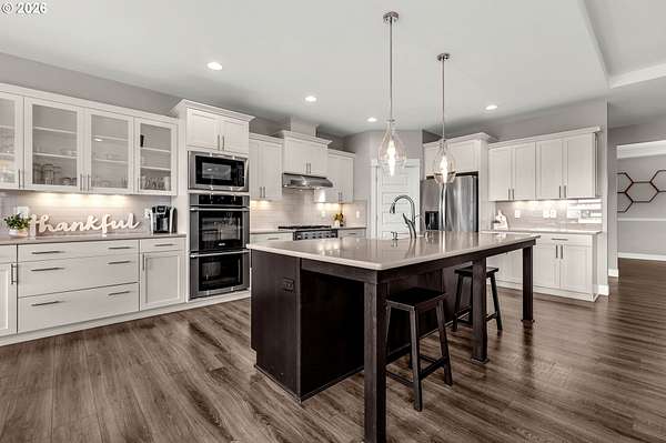 - Builtin Oven, Convection Oven, Cooktop, Dishwasher, Disposal, Double Oven, Free Standing Refrigerator, Gas Appliances, Island, Microwave, Pantry, Quartz, Tile