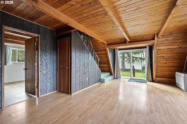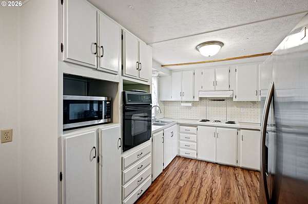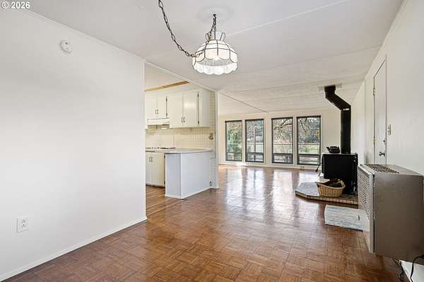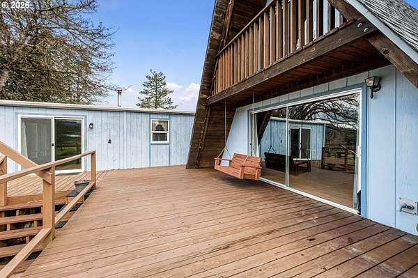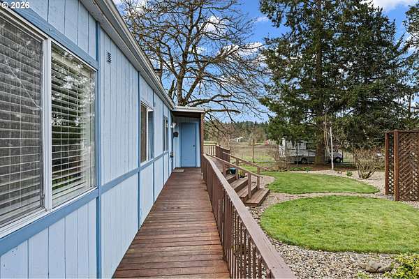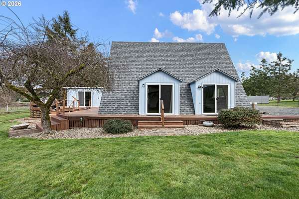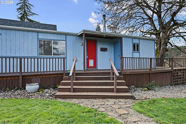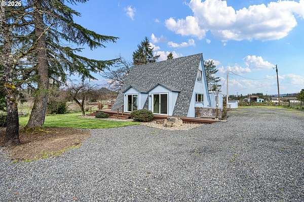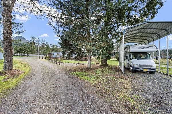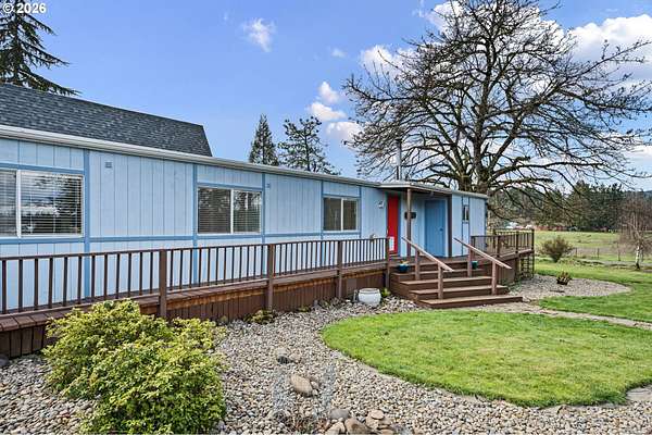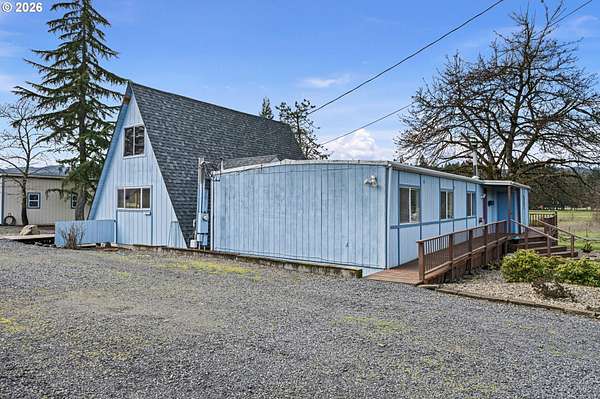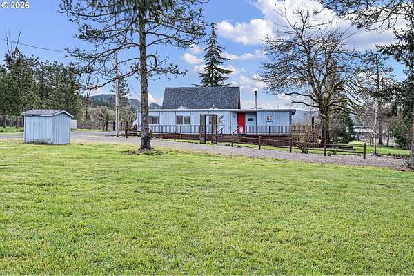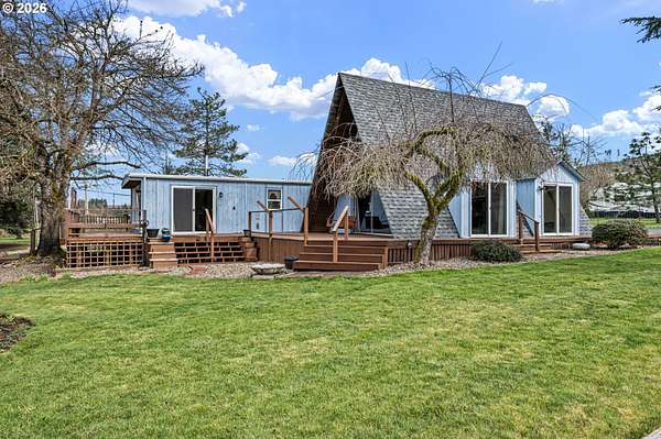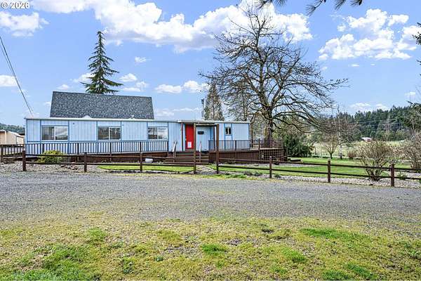 This unique property truly has something for everyone! Situated on 2.89 level acres in the desirable Pleasant Hill School District, this one-of-a-kind home combines a manufactured home with a seamlessly attached stick-built A-frame, offering character, space, and flexibility. The home features 5 bedrooms, 2 full bathrooms, and 2 versatile flex rooms-perfect for an office, hobby room, guest space, or additional living areas. Enjoy the outdoors with expansive decking designed for entertaining and relaxing while overlooking the beautifully maintained property. The land is thoughtfully developed with raised garden beds, mature fruit trees, and attractive landscaping, making it ideal for gardening enthusiasts and those seeking a peaceful country lifestyle. The property is well-equipped for hobbies, animals, and RV living, including: Two RV spaces with 30-amp power and water hookups (one with RV cover), 20' x 10' shop with water and electricity, 16' x 12' covered wood storage, 12' x 10' insulated fruit room with heat- 19' x 10' shed row, 37' x 24' barn for animals, fully fenced. Inside, stay warm and comfortable with a cozy woodstove and gas/propane heat. The propane tank is rented through Blue Star. A rare opportunity to own a versatile country property with room to grow, garden, entertain, and enjoy rural living while still being close to amenities.