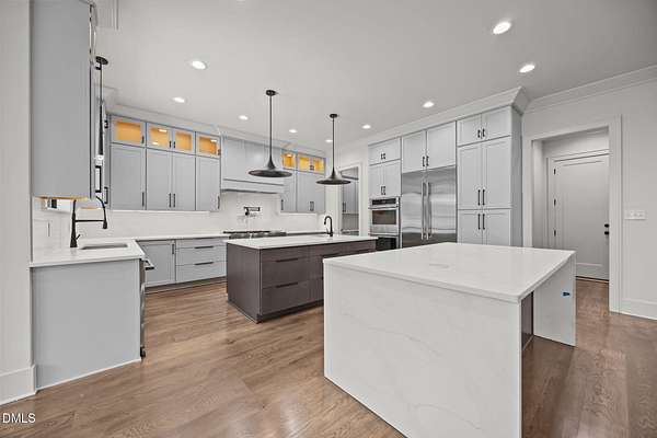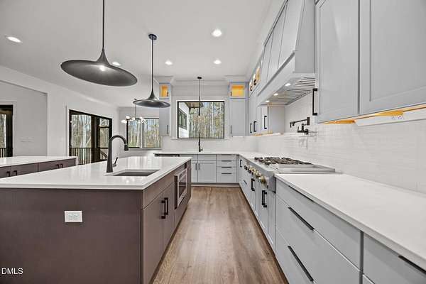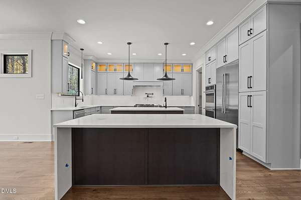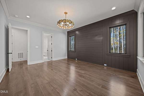 Generous Builder contribution available on this Custom build by award winning Brandywine Homes! 1.52 acre private wooded lot in a serene pond community. Upgraded trim and designer finishes throughout! Wide plank hardwoods span throughout the main living areas including the primary and guest suite! 3-car garage! Kitchen: offers custom ceiling-height cabinetry, double quartz islands with barstool seating perfect for entertaining, designer pendants, ornate tile backsplash, gourmet appliances and hidden walk-in pantry with french door! Spacious informal dining area with full window surround, flooded with natural light! Primary suite: features hardwoods, designer lighting and luxurious en-suite bath with custom duall vanity with quartz top, zero entry shower with tile to ceiling, freestanding tub and huge walk-in closet with built-ins! Family room: offers a vaulted ceiling, gas fireplace with flanking built-ins and glass sliders to the screened porch! Upstairs features a recreational room with built-in bar area and access to the study/gym, flex space and two additional en-suites!