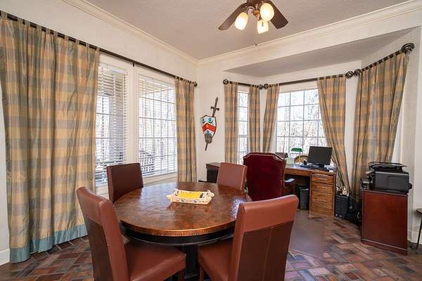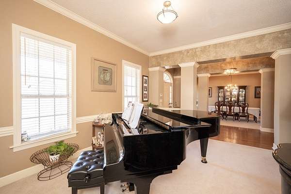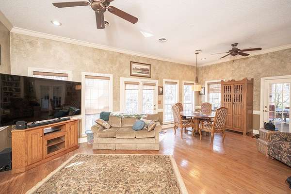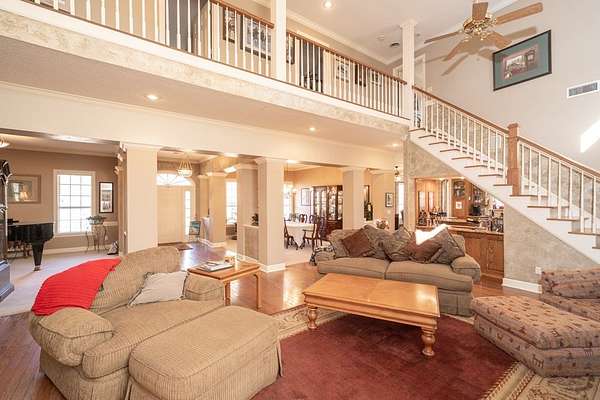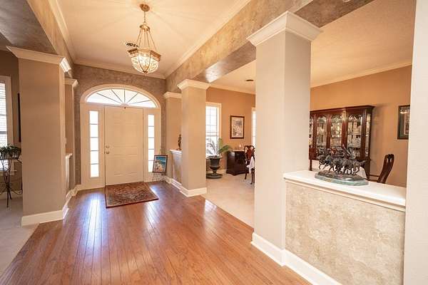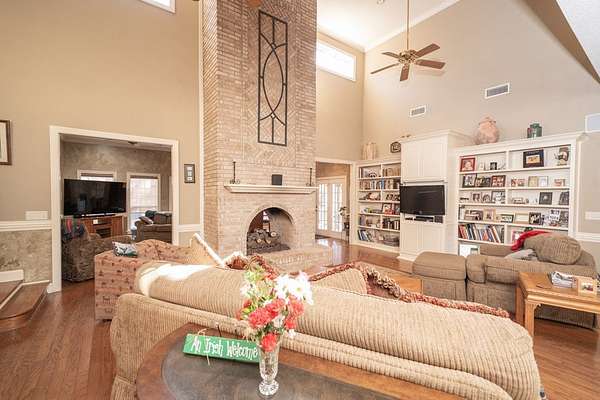 Gorgeous, stately home on over 2 private acres in popular Woodland Hills, conveniently located off Hwy 7 North & within the Oxford City School District. This well-designed home is ideal for entertaining, offering generous living space primarily on one level. As you enter, you're welcomed by a formal dining room & living room that flow into a grand family room with vaulted ceilings & a towering brick fireplace that can burn wood or gas. The see-through fireplace opens into the adjoining sunroom, creating a perfect space for guests or relaxing year-round. Enjoy outdoor living on the private covered back patio featuring a wood-burning fireplace, with patio furniture, hot tub & outdoor TV to remain. Spacious primary suite offers direct access to the covered patio & a large en-suite bath. Upstairs you'll find three large bedrooms, each with its own en-suite bath, plus an office or flex room. Three-car garage & a large laundry for extra storage. Make an appointment today!