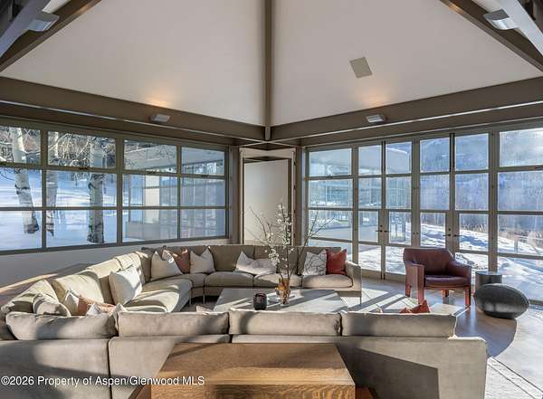 Positioned on a premier four acre view site on private Cluny Road, this property captures the sweeping, unobstructed horizon of the Elk Mountain Range towards the Continental Divide, and the full expanse of the Owl Creek Valley. The exceptional setting is paired with valuable Pitkin County land use approvals already in place for a 10,000 square foot renovation and expansion, including an approved site plan and activity envelope, with architectural design by Z Group, offering a rare opportunity to enjoy the existing residence or create a fully customized Aspen retreat. The current 5 bedroom home spans 7,351 square feet and is distinctively designed to maximize its breathtaking surroundings. Ceiling height windows frame panoramic vistas featuring Mt. Daly, filling the home with natural light and a constant connection to the landscape. An open living room and chef's kitchen seamlessly extend to the expansive covered outdoor terrace through large folding doors, creating an ideal setting for year-round entertaining. Amenities on the lower level include a media lounge, game room, and home office . Outdoor living is equally compelling, with flat yard space, private hot tub and multiple areas to take in the dramatic alpine sunsets. In an excellent location only minutes from Two Creeks at Snowmass ski area, Buttermilk, and downtown Aspen, exists a rare combination of Aspen's most sought after qualities.