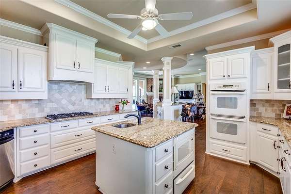 - Cooktop, Dishwasher, Double Oven, Garbage Disposer, Gas Cooktop, Microwave, Softener Water, Trash Compactor, Warming Drawer, Washer
