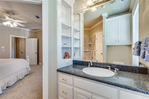 - Built-In Wine Cooler, Cable TV Available, Chandelier, Decorative Lighting, Double Vanity, Eat-In Kitchen, Flat Screen Wiring, Granite Counters, High Speed Internet Available, In-Law Suite Floorplan, Kitchen Island, Open Floorplan, Pantry, Second Primary Bedroom, Walk-In Closet(s), Wet Bar