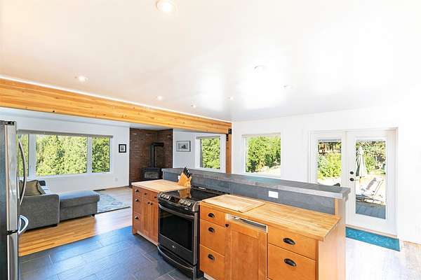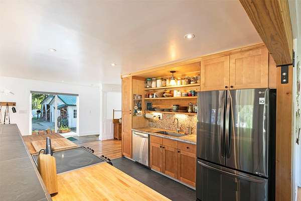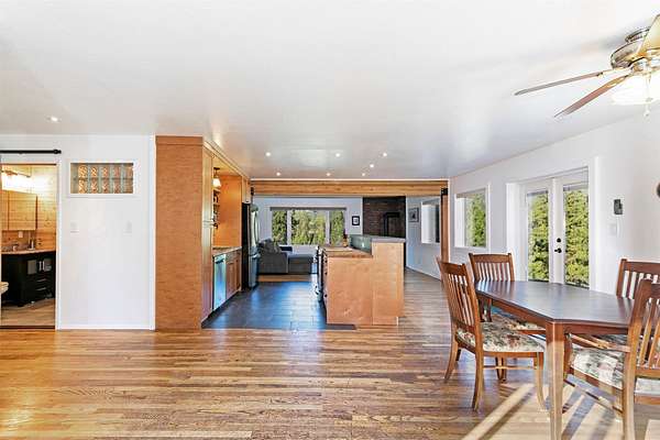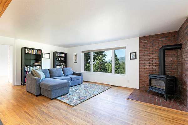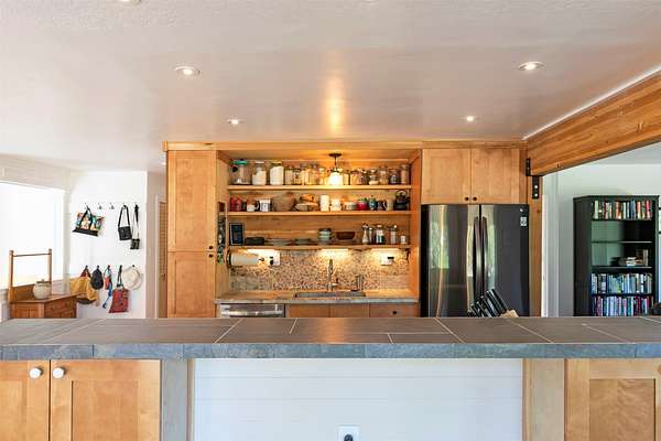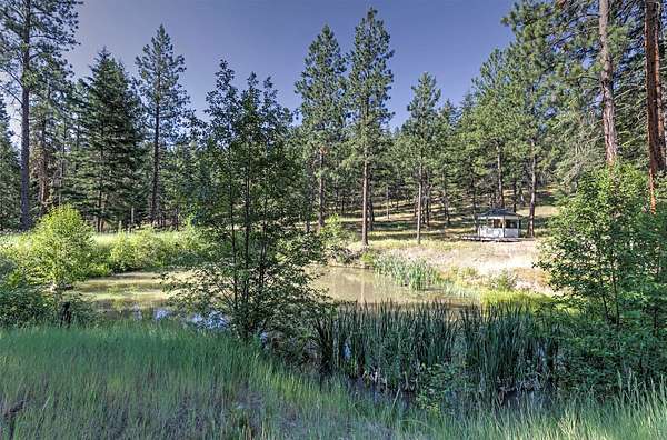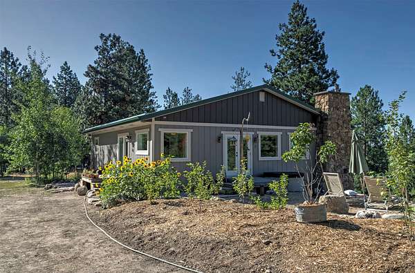 Tucked within tall pines, down a gated private drive, lies an idyllic hobby farm retreat at 821 Fred Burr Rd. The peaceful 20-plus acres are currently home to irrigated and cross-fenced pastures full of domestic goats, geese, and chickens, as well as a plethora of Montana wildlife soaking in the bucolic surroundings of this easy-to-access but remarkably secluded-feeling parcel. Take advantage of sweeping mountain views from the hot tub on the deck or from inside the open-concept living area with walls of sun-drenched windows thoughtfully placed to feel like you're high up in the trees. The remodeled chef's kitchen and main bath feel luxurious and well-considered, incorporating natural textures and a palette complementary to the rural environment. Two light-filled bedrooms and a bath with an over-sized soaking tub complete the main level. Downstairs, you'll find another large bedroom, ample storage, and an open-concept area that can be tailored to fit your individual needs. Outside, there are multiple outbuildings, including Honey's House, which could serve as a small artist studio, outdoor office, or very high-end dog accommodations. Below the home, enjoy complete seclusion in the pergola at the property's private, spring-fed pond. With two wells, a new septic system, as well as substantial improvements to the home and ample acreage during the current owner's caretaking, all located less than 20 minutes from some of the best restaurants and recreation in the scenic Bitterroot Valley, this one-of-a-kind property is certain to quell any yearning for a slice of rural Montana paradise.