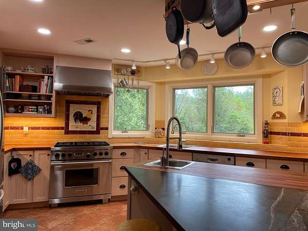 Beautifully situated on a gentle incline looking at Round Mountain, "Dogwood Retreat" was custom built by Master builder Peter Kreyling hallmarking those special quality details he was known for. This sparkling contemporary with a metal roof and 2 fireplaces is flooded with light and makes the soul feel peaceful and uplifted! The main level features upgraded quality casement windows, radiant floor and passive solar heating for increased energy efficiency, plus everything you need for easy One-Level Living: A primary suite, 2nd bedroom, gorgeous gourmet kitchen with a Wolf six-burner stove and large oven, Butcher block counter tops, soapstone counter bar, an Italian wood-burning pizza oven, hand-painted French tile decor, large pantry and laundry room, and a spacious great room with a Rumsford fireplace. Originally built as a 3 bedroom home, the upper bedroom has been converted into a stunning library with cherry cabinetry and "His and Her" offices with interior and "ground level" access. The home showcases easy care stucco and Hardie-plank exterior. ** Complete architectural plans available for stylish Oversized 2-story Garage with upper level space for studio/in-law suite. The property is a perfect mix of open space and trees, mountain views, a Deer-proof enclosed raised garden awaiting plantings of your choice, a slate patio, and a whole house generator. A perfect home for those looking to downsize without sacrificing style or comfort or for those who just want to enjoy the good Rappahannock County life. Close to multiple fine dining venues, local restaurants, wineries/breweries, art galleries, live theatre, extraordinary music and concerts, beautiful Skyline Drive, and the Shenandoah National Park. Make "Dogwood Retreat" your special country place! (Previous Contract - Buyers had immediate Financing Issues!)