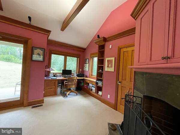 Beautifully situated on a gentle incline looking at Round Mountain, "Dogwood Retreat" was custom built by Master builder Peter Kreyling hallmarking those special quality details he was known for. This sparkling contemporary with a metal roof and 2 fireplaces is flooded with light and makes the soul feel peaceful and uplifted! The main level features upgraded quality casement windows, radiant floor and passive solar heating for increased energy efficiency, plus everything you need for easy One-Level Living: A primary suite, 2nd bedroom, gorgeous gourmet kitchen with a Wolf six-burner stove and large oven, Butcher block counter tops, soapstone counter bar, an Italian wood-burning pizza oven, hand-painted French tile decor, large pantry and laundry room, and a spacious great room with a Rumsford fireplace. Originally built as a 3 bedroom home, the upper bedroom has been converted into a stunning library with cherry cabinetry and "His and Her" offices with interior and "ground level" access. Additional upgrades include a built-in sound system, security system, and garden irrigation system. The home showcases easy care stucco and Hardie-plank exterior. ** Complete architectural plans available for stylish Oversized 2-story Garage with upper level space for studio/in-law suite. The property is a perfect mix of open space and trees, mountain views, a Deer-proof enclosed raised garden awaiting plantings of your choice, a slate patio, and a whole house generator. A perfect home for those looking to downsize without sacrificing style or comfort or for those who just want to enjoy the good Rappahannock County life. Close to multiple fine dining venues, local restaurants, wineries/breweries, art galleries, live theatre, extraordinary music and concerts, beautiful Skyline Drive, and the Shenandoah National Park. Make "Dogwood Retreat" your special country place!