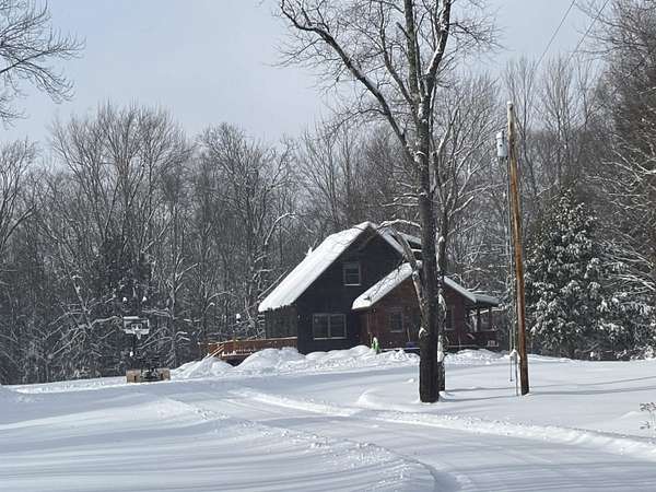 "Paradise at the end of the road." This incredible 60-acre parcel features a beautiful pond and a meticulously maintained cedar sided home and red cedar wood sided mudroom wing. A true foragers delight! The house offers an expansive front deck and a covered rear porch, perfect for enjoying the surroundings. Inside, you'll find a bright and open floor plan with stunning maple hardwood floors and elegant birch kitchen cabinets and Corian countertops. The main floor boasts a large kitchen and dining area, a convenient mudroom, and a versatile den or bedroom. Custom Jatopa (Brazilian Cherry)stairs to the second floor which floor provides three comfortable bedrooms and a full bath. Additionally, the lower walk-out level includes a fantastic one-bedroom in law apartment, offering even more flexibility and space. Property in Current Use Program Please let me know if you have any questions or would like more information.
