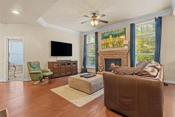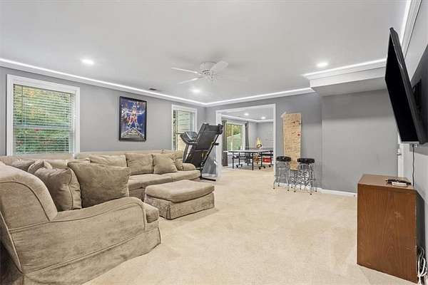 Welcome to 821 Tramore in the desirable neighborhood of Lochshire! With gracious room sizes, open floor plan on the main level, and a finished basement for a variety of activities, you will find more than enough space in this home to breath or grow! The main level includes the family room, eat in kitchen, separate dining room, and office. Upstairs you will find the owners suite with attached sitting room along with three additional bathrooms. The finished basement boasts a full bathroom, family room, flex room and three additional rooms that can be used in any way you choose. Outside is a level front yard and a level back yard with a concrete pad for recreation. The home backs up to wood line area for additional privacy. A new roof in 2025, 2 water heaters to serve the home, as well as a separate HVAC system for each level of the home. Lochshire sits at the southern border of Cherokee County with its highly rated schools and is a swim/tennis community. This home is moments from shopping, dining, recreation, access to I-75, and is just waiting to welcome you!