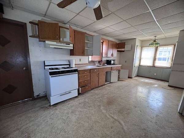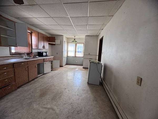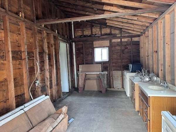 Opportunity awaits with this 1.5 story home full of potential! Situated on a large corner lot, this property offers great space both inside and out, making it an ideal candidate for investors or buyers looking to build equity. The main floor features a generously sized living room, a large kitchen with plenty of room for redesign, a bedroom, full bathroom, and a welcoming entryway. Upstairs, you'll find a spacious bedroom with a landing area that could serve as a home office, reading nook, or additional flex space. Additional highlights include a stone basement, electric heat, and a 2+ stall detached garage-perfect for extra storage or workshop space. Important Note: This home is a fixer-upper and is being sold as-is. It may not qualify for certain types of financing. Bring your vision and make this property your next project!