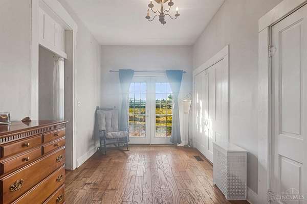 - 9 Ft + Ceiling, French Doors, Multi Panel Doors, Natural Woodwork