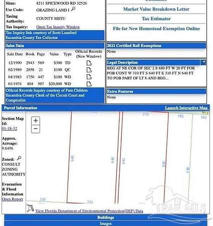 Est $8,260/mo**Package sale!- This listing is for 9.66 acres of land and Spicewood Dr. approx. 2.72 acres of Spicewood Dr and road footage. This property is located in the fast growing Beulah community right next to the Perdido River Water Management Area. The property is close to the new Beulah Middle School, Navy Federal Credit Union, and the Interstate. Its is very close to the new Antietam Subdivision. There are so many potential uses for this property, whether it is a beautiful Ranch Hideaway or a Subdivision.