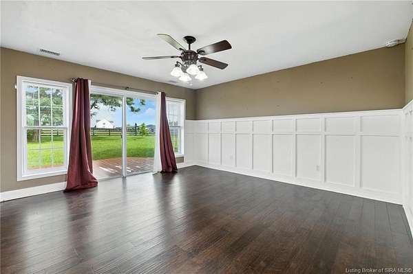 Take Highway 62/10th Street through Charlestown for approximately 11 miles. Turn left on Salem Church Road and house is on the left.