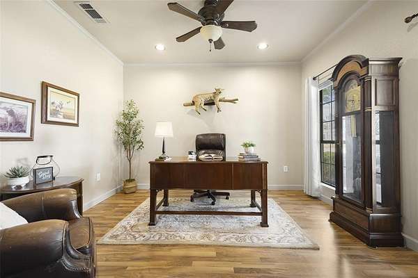Beautifully, remodeled country home, with automatic gate is nestled on 4.6 acres in Royse City, with convenient 10-15 minute access to the many amenities of Fate & Rockwall. Located on the Central Migratory Flyway of North America, due to a seasonal wetland area at the rear of the property & neighbor's pond. Enjoy spectacular viewing of all kinds of birds & butterflies. This home boasts extensive custom cabinetry. Kitchen features tons of pull-out cabinets & organizer systems, granite, instant hot water faucet, wood look tile & sliding barn door walk in pantry. Large primary suite features spectacular spa bathroom, 2 walk in closets & a wall of windows. 2 nice size secondary bedrooms with access to large secondary bathroom featuring granite & updated shower fixtures. Private study with wood floors could be used as 4th bedroom. Large front porch & back patio area. Large oversized garage has workshop & sink. New roof & paint (May 2025). Peaceful, country living or a relaxing weekend getaway within minutes of shopping & restaurants.