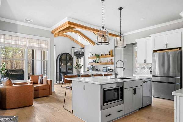 No HOA. Total privacy. 5.55 acres of peaceful seclusion-yet minutes from everything. Perfectly positioned in Bethlehem, GA, midway between Atlanta and Athens, this 2023 custom-built estate delivers over 5,000 square feet of refined living designed for space, comfort, and freedom. Tucked behind a gated, fully fenced and level backyard, the possibilities are endless-add a private pool, workshop, barn, or simply enjoy wide-open space with no restrictions. A rare combination of land, luxury, and convenience, just 5 minutes from Hwy 316 and the Gateway at Bethlehem, featuring Publix, dining, entertainment, a hospital, and the new Kroger Marketplace. Love charm and culture? Downtown Monroe is only 20 minutes away with festivals, concerts, and local dining. Inside, main-level living-a true rarity-sets this home apart. From the moment you go inside, you're welcomed by hardwoods, modern finishes, and an open-concept layout built for both everyday living and entertaining. The spacious family room flows seamlessly into the custom chef's kitchen with high-end stainless steel appliances. The primary suite on main is a private retreat, featuring a double-sided fireplace, a stunning floor-to-ceiling tiled spa bath, and a custom-designed walk-in closet. Two additional guest bedrooms with a Jack-and-Jill bath, a dining room, laundry/mudroom, and sitting area complete the main level with thoughtful functionality. Upstairs, enjoy a perfect in-law or guest suite with its own living area, bedroom, and full bath. The partially finished basement offers 710 sq ft of "man cave" space plus over 1,400 sq ft unfinished, already stubbed for baths-ideal for a home theater, gym, additional bedrooms, or custom retreat. Outside is where this home truly shines. Relax on the covered back porch, unwind in your private jacuzzi, or grill out using the hard-connected gas line. Nearly an acre of fenced yard keeps pets safe while your guests enjoy the $10,000 custom playground. The current owner has invested $40,000+ in upgrades, including a 900-ft concrete driveway, 360 camera system, alarm, and a custom-built covered estate entrance. The home is fully smart-wired-control lighting, HVAC, cameras, alarm, and garage from your phone. And the future? Walton County is within two years of welcoming the Rivian Manufacturing Plant, signaling strong long-term value and demand.