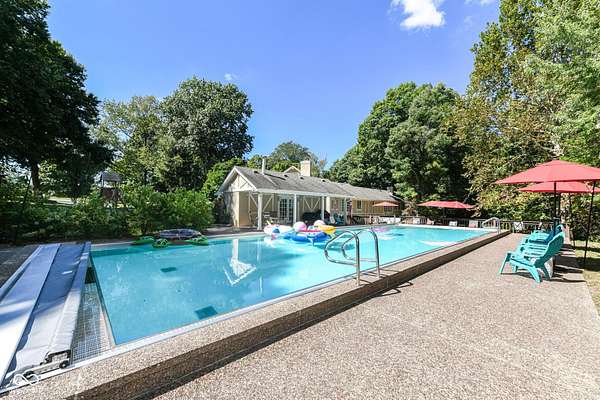 Sprawling Ranch Estate with Pool, Guest Quarters & Ultimate Privacy! Set on 2.58 acres of wooded privacy, this extraordinary ranch home with a finished walkout basement blends luxury, functionality, and resort-style living. Surrounded by mature trees and tucked away on a circle driveway, the property offers the perfect balance of seclusion and convenience. Outdoors, enjoy the centerpiece: a 60x20 in-ground pool with a charming pool house featuring a half bath. Whether entertaining or simply relaxing, the expansive pool deck and surrounding natural beauty provide a true retreat. Inside, the home offers 6 bedrooms, including 2 primary suites (one on the main level) plus a private guest suite ideal for in-laws or an au pair. With 7 full bathrooms and 2 half baths, every space has been designed with comfort and ease in mind. The finished walkout basement extends your living and entertaining options, featuring a bonus/game room with kitchenette, a fitness room adjacent to two newly updated full baths perfect for post-pool use, and access to a spiral staircase leading upstairs. On the main level, elegant details shine with coffered ceilings, custom molding, parquet wood floors, and multiple fireplaces. Entertain in style with a formal dining room and adjoining scullery/butler's pantry, a chef's kitchen with professional-grade gas range, prep sink, and expansive counters, and a huge pantry/mudroom with custom built-ins. Additional living spaces include a billiard room, piano room, and an office/den with French doors. Additional highlights include 2 laundry rooms, handicap-accessible entry ramp, and a 3-car attached garage. All of this comes with the convenience of being just minutes from I-465 and I-65, with easy access to shopping, dining, and entertainment. With its thoughtful design, abundance of living space, and one-of-a-kind amenities, this property is more than a home-it's a lifestyle.