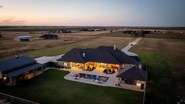 Escape to the perfect blend of luxury and country living on this stunning 10-acre property. This custom-built 4-bedroom, 6-bath home was designed for comfort, entertaining, and everyday functionality. Step inside to find a bright, open floor plan featuring multiple living spaces, a beautiful stone fireplace, and an elegant kitchen with rich cabinetry, a spacious island, and high-end finishes. Each bedroom includes its own private bath, while the primary suite offers serene backyard views and direct pool access. A dedicated workout room and upstairs media area provide extra flexibility for your lifestyle. Outdoors, enjoy your own private retreat, complete with a sparkling pool, large patio, pickleball court, turf putting green, and sweeping views of the surrounding countryside. Need room for hobbies or business? The impressive 3,900 sq. ft. shop includes overhead doors, and plenty of space for equipment, storage, or recreation. Whether you're looking for a family estate, a place to entertain, or a peaceful escape, this remarkable property offers it all, only minutes from Lubbock.