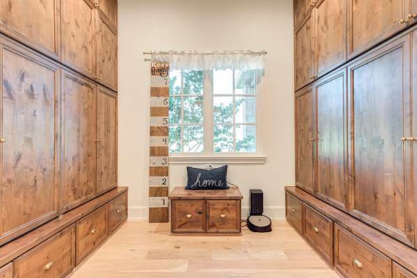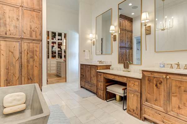- Bar, Bookcases, Breakfast Bar, Built-In Features, Cathedral Ceiling(s), Ceiling Fan(s), Chandelier, Crown Molding, Double Vanity, Entrance Foyer, High Ceilings, High Speed Internet, His and Hers Closets, Kitchen Island, Natural Woodwork, Open Floorplan, Pantry, Quartz Counters, Sauna, Smart Thermostat, Soaking Tub, Sound System, Tile Counters, Walk-In Closet(s), Water Sense Fixture(s), Wet Bar