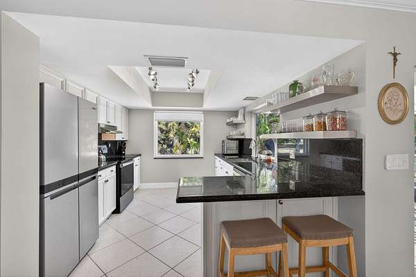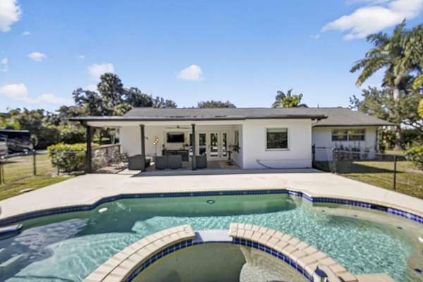 WOW! Remodeled 3/2/2 on 1.5 acres centrally located in the heart of Palm Beach Gardens in the sought after community of Square Lake. Only 1 mile to I-95 and 3 blocks to shopping. All hurricane impact windows & doors. White shaker kitchen cabinets with stainless steel appliances and granite counters. Very Open floorplan featuring tile floors and a huge 27' x 24' living area. Covered porch overlooking the pool & spa. Parking for numerous vehicles including boats, RV;s etc. Seller collects $885/ month by renting space to RV & boat owners now on a month to month basis. Barn doors separate the living area from bedrooms 2 & 3. In 2021 kitchen appliances were replaced as well as pool heater, reverse osmosis system, new attic insulation, new AC, new well pump and new carbon water filtration .New kitchen appliances January 2021 .New pool heater February 2021 .New well valve February 2021 .New reverse osmosis system under kitchen sink January 2021 and Ice maker filtration .New second drive February 2021 (RV) including electric 50amp also 50amp on main drive on the side on master bedroom with RV sewer hook up. .New pump for sprinkler system, all sprinkler heads and zone controls replaced February 2021 .New attic insulation July 2021 .New Impact Exterior Doors Master bedroom and Garage February 2021 .New impact front door, patio door, kitchen windows, living room back side August 2021, all the rest impact also including garage door. .New AC September 2021 .New hot water heater November 2021 .New well water pump for the house (Ed's wells) and new carbon filtration (Atlantic Water) replaced 5/23/22 .Updated bathrooms June 2022 .Pool changed to salt water July 2022 .New well system January 2023 .Second Well Valve to boost more pressure to the sprinkler system May 2024