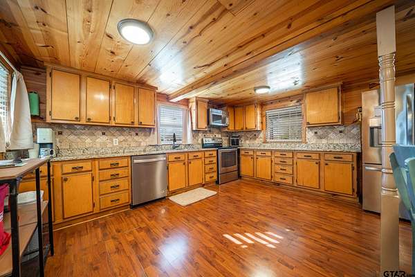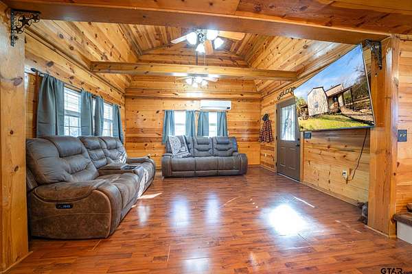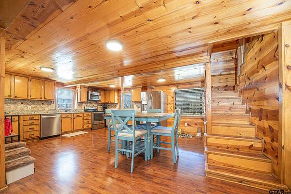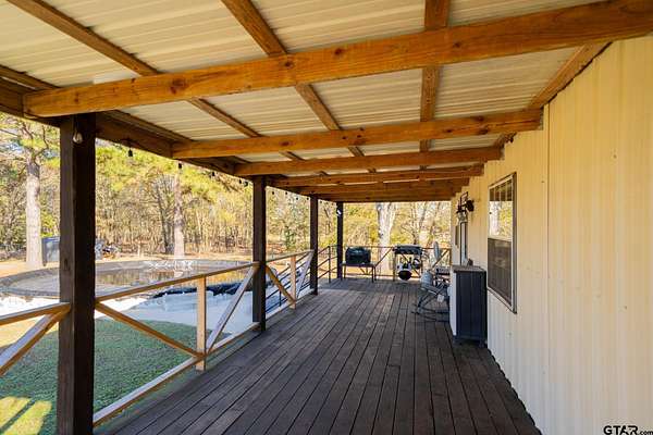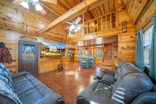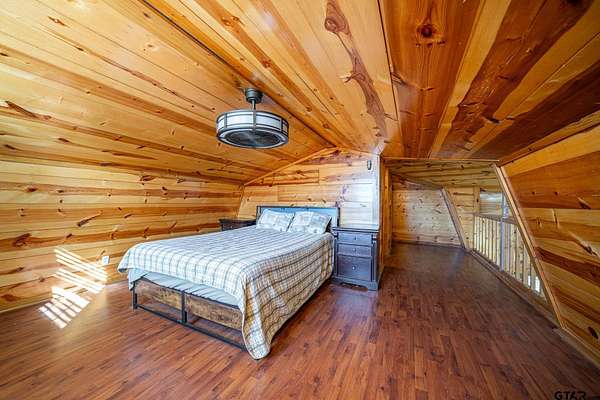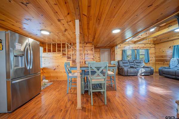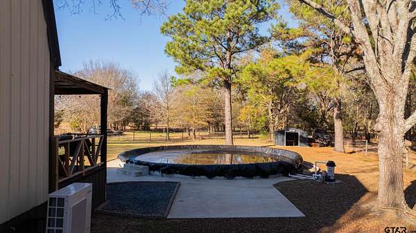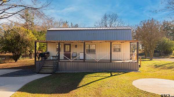 Cozy Cabin Retreat on 8 Acres. Escape to this charming 2-bedroom, 1-bath cabin, perfectly set on 8 beautifully manicured acres with a small, serene pond tucked in the woods. A gated pipe-fenced entrance welcomes you to this peaceful oasis, complete with fenced and cross-fenced areas, ideal for pets or livestock. The open-concept living, dining, and kitchen area boasts modern touches, including stainless steel appliances, granite countertops, and a spacious tile shower with matching granite vanity. Both bedrooms are located upstairs and feature a walk-in closet, offering comfort and practicality. Step out onto the back covered deck to relax while overlooking the sunken above-ground swimming pool and expansive backyard—a perfect setting for entertaining or unwinding after a long day. Conveniently located less than 30 minutes from the pristine waters of Lake Cypress Springs and Lake Bob Sandlin, this property is a dream for nature lovers and outdoor enthusiasts alike. Don’t miss out on this rare find—schedule your showing today!