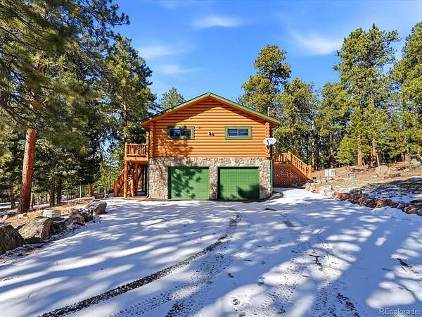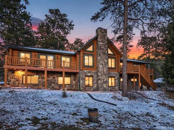 Welcome to your peaceful retreat on 2.19 acres in the desirable Homestead community. This cozy log home is surrounded by mature trees, natural rock outcroppings and abundant wildlife, offering the kind of private mountain living that’s hard to find—yet you’re still just minutes from the 285 corridor & Aspen Park conveniences. Inside, the home blends rustic character with a functional layout. The main level features three bedrooms & two full baths, including a primary suite, along with a warm and inviting living room defined by tall ceilings, exposed beams, log walls, & a natural gas fireplace. Recently upgraded Andersen windows bring in natural light and frame the surrounding forest, while the kitchen and dining area open directly to the back deck for easy indoor-outdoor living and entertaining. The walk-out lower level offers exceptional flexibility for multigenerational living, w/ an additional bedroom, a 3/4 bath, and multiple distinct areas that could function as a living room, kitchen or kitchenette, & office space, including an existing wet bar with cabinetry to help get you started, along with direct access to the oversized garage. Outdoor living is a true highlight, w/ multiple spaces to enjoy the setting, including a front deck, back deck & front patio—perfect for gathering with friends, relaxing after a day on the trails, or simply taking in the mountain air. Thoughtful updates like LeafGuard gutter guards & a Generac whole-house generator add peace of mind for year-round living. With no HOA, you’ll enjoy the freedom to truly use and enjoy your land. The home is served by top-rated Parmalee Elementary, West Jefferson Middle School and Conifer High