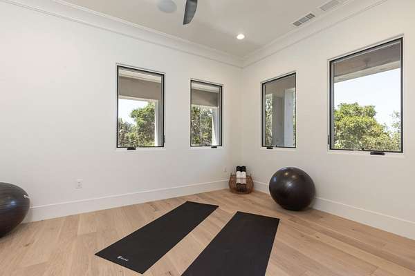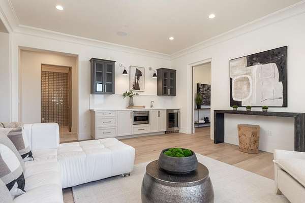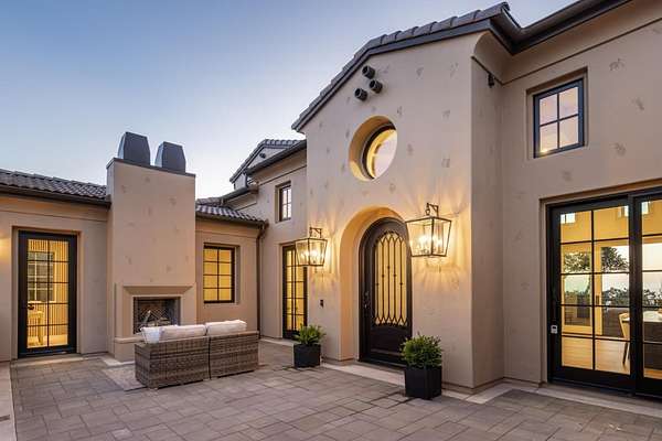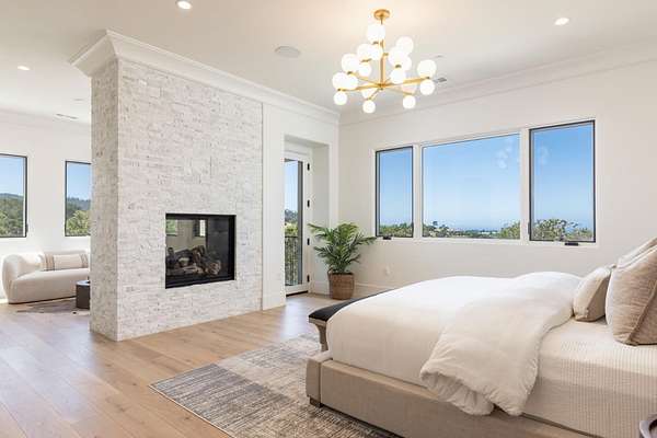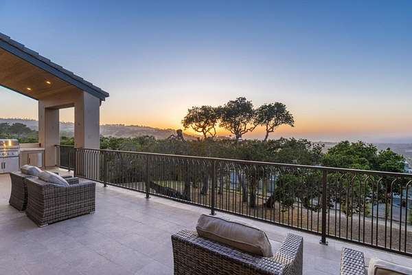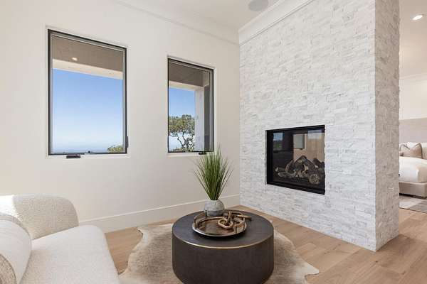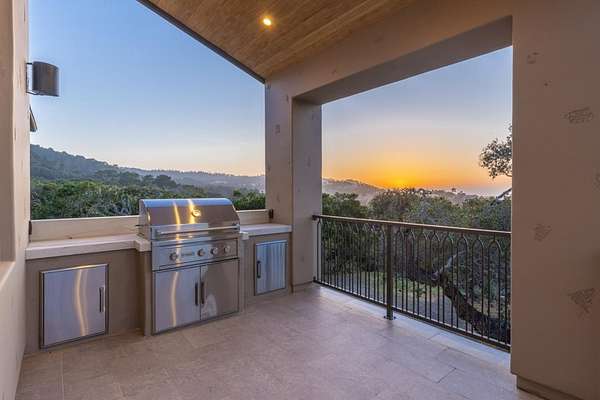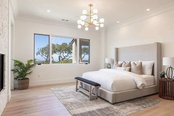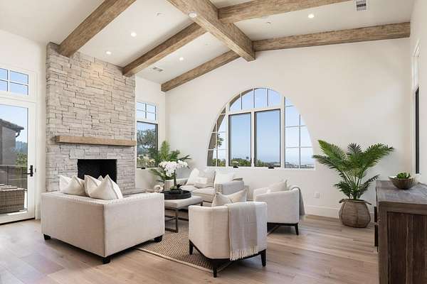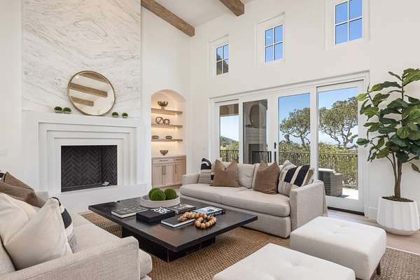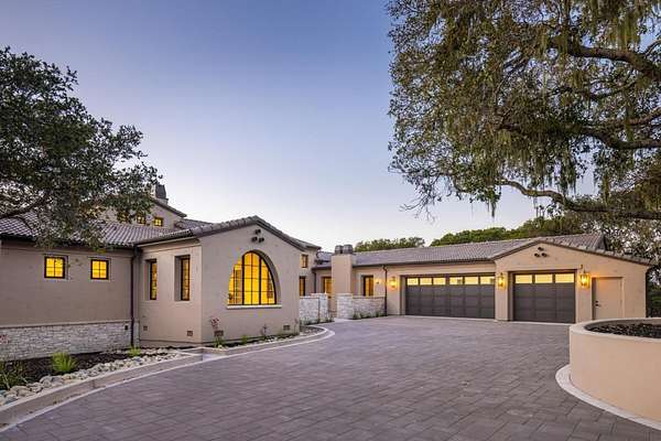 Nestled on a coveted street in Monterra, 8220 Manjares is a newly built custom home offering elevated coastal living. Set on a premier view lot surrounded by majestic oaks and sweeping bay views, this 5,800 sq ft masterpiece blends timeless sophistication with designer details. A private courtyard with an outdoor fireplace welcomes you to the home, leading to a grand, light-filled great room that opens onto a spacious balcony to capture the stunning views. The chefs kitchen features leathered quartzite countertops, Thermador appliances, and a large center island, perfect for both cooking and entertaining. The main-level primary suite is a serene retreat with its own fireplace, spa-inspired bathroom, and expansive closet. Downstairs offers three ensuite bedrooms, a family room, wine cellar, and second laundry area. Equipped with smart home technology, this property represents the finest in comfort, design, and craftsmanship. A rare opportunity for Monterra luxury living.
