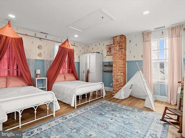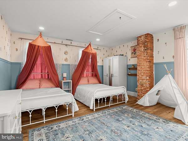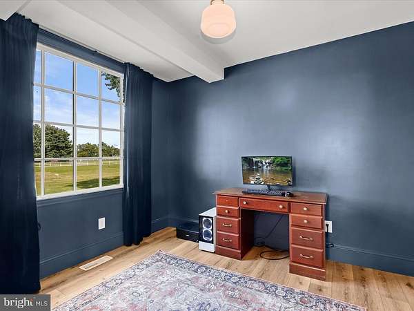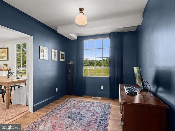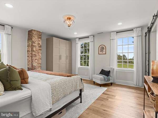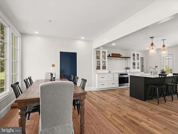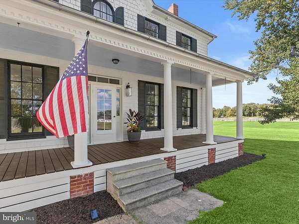 Discover timeless charm and modern sophistication in this beautifully renovated farmhouse, where historic character combines effortlessly with contemporary design. Welcoming entry options include a gracious front porch, a side porch for daily convenience, and a rear entrance perfectly suited for carrying groceries or simply enjoying the tranquil views. The foyer sets the tone with modern board-and-batten wainscoting, chair rail accents, and warm luxury vinyl plank flooring that flows throughout the main level. A formal dining room, also ideal as a stylish lounge or media space, featuring high ceilings, architectural details, and smart built-ins. The adjacent living room, or possible play area, continues the home's elegance with a decorative mantel, chair rail, and abundant natural light. At the heart of the home, the gourmet kitchen impresses with a farmhouse sink set in a center island with breakfast bar, stainless steel appliances, 42""A? display cabinetry with soft-close drawers, designer lighting, and a charming breakfast nook with a sitting area. An office space provides versatility for work or study. Upstairs, the primary suite offers a serene retreat with a sliding glass barn door leading to a spa-inspired en-suite bath. Here you'll find a dual vanity, an expansive walk-in shower with double showerheads, and modern tile finishes. Two additional bedrooms, each enhanced with elegant trim details, and a full hall bath complete the upper level. The exterior is just as captivating, with a pavilion area ideal for lounging or a future hot tub, two spacious barns, a pen for animals of your choosing, and beautifully landscaped grounds. The home enjoys close proximity to a community dog park, garden, and fields with a pavilion, picnic tables, and sports areas. With convenient access to MD-32, MD-100, and I-95, this remarkable property offers the perfect blend of pastoral beauty, modern comfort, and luxury farmhouse living. Minutes to Fort Meade!
