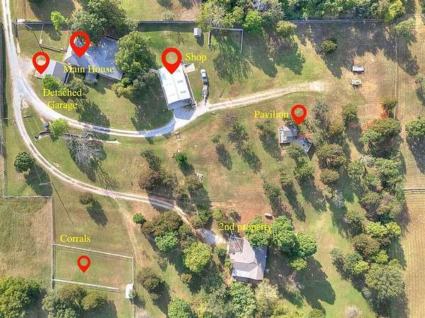 Discover a rare opportunity with 8224 Kasbaum Lane, offering two homes, a large shop, and acreage on 5.59 unplatted acres. Together, the residences total 4,090 square feet. Multi-Generational/Equestrian or livestock. The possibilities are there. The main residence (2,568 sqft) features 2 bedrooms, 2 bathrooms, a spacious living room, 2 flex rooms, and an oversized kitchen and dining area that could easily be converted to a 3-bedroom layout. A 256 sqft detached garage with a single bay door is located just off the home. The second residence (1,522 sqft) offers 2 bedrooms, 2 bathrooms, 2 living areas, a carport, and its own well and septic. Outbuildings include a 30x48 metal shop with 4 garage bays and a 34x58 (1,972 sqft) lean-to with garage enclosure, along with a storm shelter, 4 livestock corrals, and 5 freeze faucets. A picnic pavilion sits atop the hill with views across the property. The land is fully gated and fenced with an elaborate drainage system already in place. This unique property combines privacy and versatility, perfect for multi-generational living, rental income, or hobby farming. Cash or conventional financing only - will not qualify for FHA or VA. Minimum 24-hour notice required for all showings.