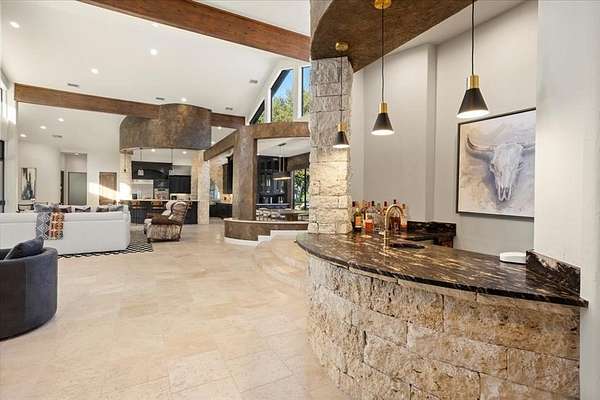 - Built-In Features, Built-In Wine Cooler, Cable TV Available, Cathedral Ceiling(s), Chandelier, Decorative Lighting, Double Vanity, Eat-In Kitchen, Flat Screen Wiring, Granite Counters, High Speed Internet Available, In-Law Suite Floorplan, Kitchen Island, Natural Woodwork, Open Floorplan, Pantry, Vaulted Ceiling(s), Walk-In Closet(s), Wet Bar