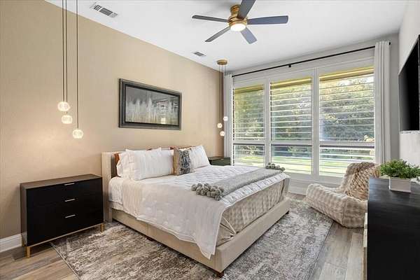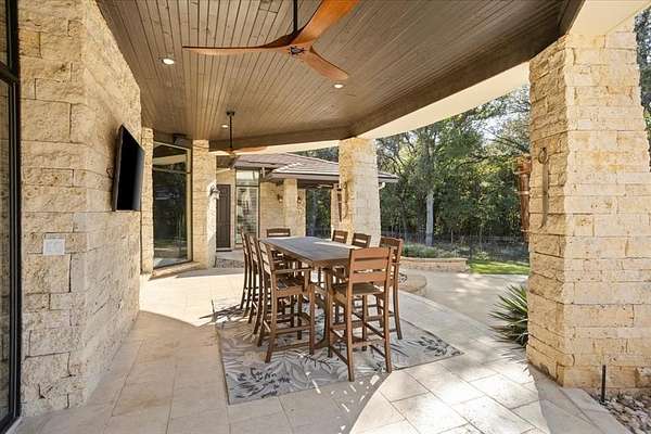Welcome to this stunning gated estate in the highly coveted Ashbriar neighborhood. Set on 4+ wooded acres, this beautifully updated home blends luxury and tranquility. Featuring 4 spacious bedrooms, 5.5 baths, and an open living area with vaulted ceilings, a gas starter fireplace. and walls of windows overlooking the private backyard. The kitchen offers Cambria quartz countertops, gas cooktop, double ovens, and a wet bar perfect for entertaining. The primary suite includes new custom cabinetry and freestanding tub, dual vanities, and two walk-in closets. Attached mother-in-law suite offers a full kitchen, living area, separate laundry, full bath, private patio and entrance. Outdoor is truly an oasis featuring two covered patios, built-in grill, sparkling pool with water features, and a fire pit. This gorgeous home is one of a kind and is truly move-in ready!