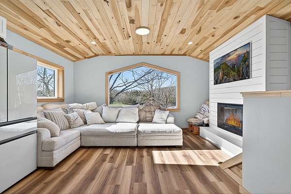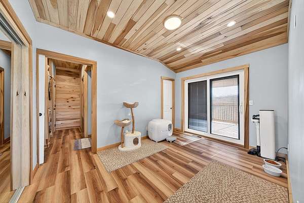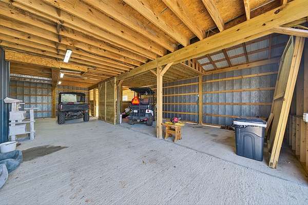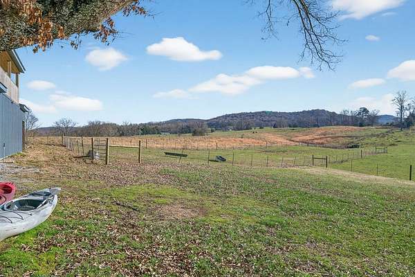 New construction barndominium on 25 rolling acres with Wolf River frontage and stunning views of the farm and Tennessee hills. The main level offers a finished flex space with half bath, ideal for a bedroom or office, plus approx. 1300 sq ft of open barn space with stall. The upper level features an open kitchen/living area with electric fireplace and large windows, full bath with laundry, walk-in closet, and bedroom with walkout to a spacious covered deck. Relax on the bed swing and enjoy the peaceful setting. Property includes fenced pasture, pond, camper hookup, and dog lot, with excellent opportunities for farming, recreation, or further development. Enjoy fishing, tubing, and kayaking with direct Wolf River access. Income currently produced from one oil well and communal wells; mineral rights leased but will convey. Convenient to Dale Hollow Lake, Pickett State Park, Big South Fork, and Alvin C. York State Historic Park.